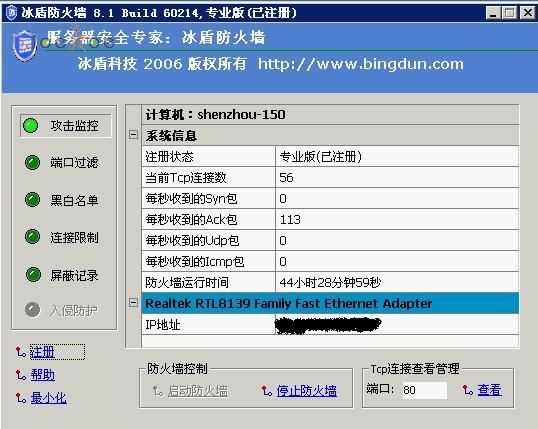 冰盾v8.1重新更新的DDOS防护内核,具备更高的兼容性、稳定性和增强的抗DDOS能力,不仅可有效抵御各种通用的SYN、ACK、FIN、UDP、ICMP等FLOOD洪水攻击,而且可有效对抗各种CC的变种多连接TCP攻击,可防护已知的M2攻击器、传奇杀手、传奇克星、 传世通用攻击器、传世灭绝攻击器,可专业防护私服、聊天室、商业网站、大型论坛等主机服务器免受DDOS攻击,是迄今为止性价比最高的抗DDOS产品。