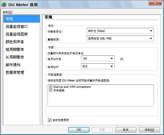 du meter中文版是显示直观的网络流量监视器,既有数字显示又有图形显示。让你清楚的看到浏览时以及上传下载时的数据传输情况,实时监测你的上传和下载的网速。新版增加了观测日流量、周流量、月流量等累计统计数据,并可导出为多种文件格式。
