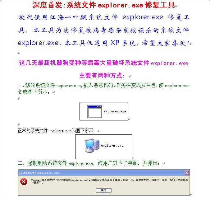 系统文件explorer.exe修复工具