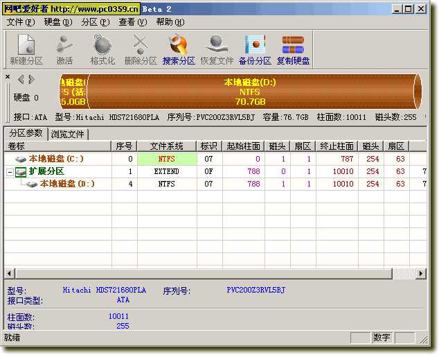 - 支持基本的分区建立、删除、隐藏等操作。建立新分区时可指定详细参数;