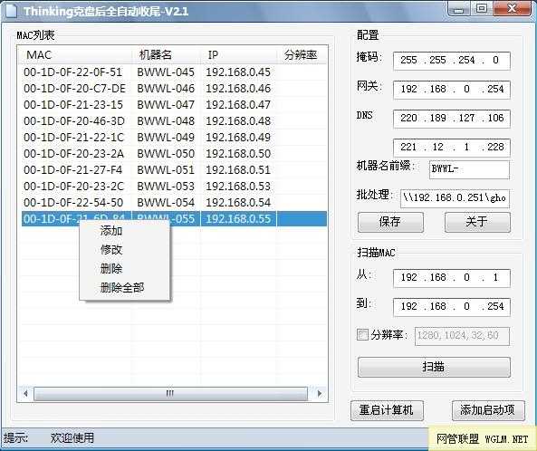 ; + 增加MAC地址列表右键"修改","添加","删除",","删除全部".