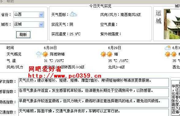 所有的这些只要你使用 全国天气预报 就可以解决了.本软件可以查询全国所有城市三天内天气情况,并提供实时天气实况,同时还给你穿衣、感冒、交通、中暑、公园、防晒、旅行等各项全方位天气指数。