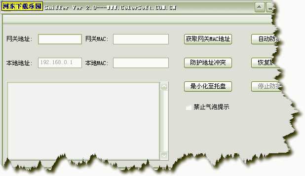 1、填入网关IP地址,点击[获取网关地址]将会显示出网关的MAC地址。点击[自动防护]即可保护当前网卡与该网关的通信不会被第三方监听。注意:如出现ARP欺骗提示,这说明攻击者发送了ARP欺骗数据包来获取网卡的数据包,如果您想追踪攻击来源请记住攻击者的MAC地址,利用MAC地址扫描器可以找出IP 对应的MAC地址.
