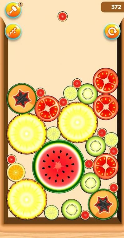 留意周围的西瓜块形状,合并时考虑周围块的适配性。