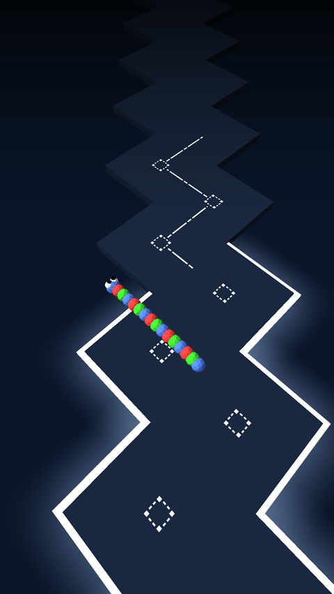 跟随音乐节奏点击,使线条转向,指引线条躲避障碍,到达终点。
