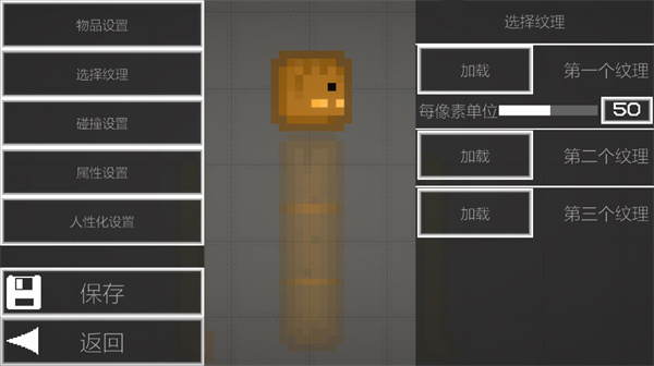 接着可以进行物品设置、选择纹理、碰撞设置、属性设置、人性化设置等多种功能,除此之外,游戏中还有很多玩法等着玩家们自行下载体验。