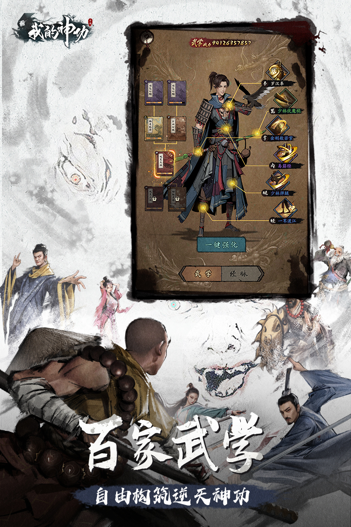 我的神功最新版是款玩起来非常精彩的水墨国风武侠养成手游,游戏以架空的世界观为背景,你可以自由的扮演各种角色,玩家去扮演各种角色来加入不同的门派学习各种江湖绝技,喜欢这类游戏的朋友赶快来这里体验吧!!