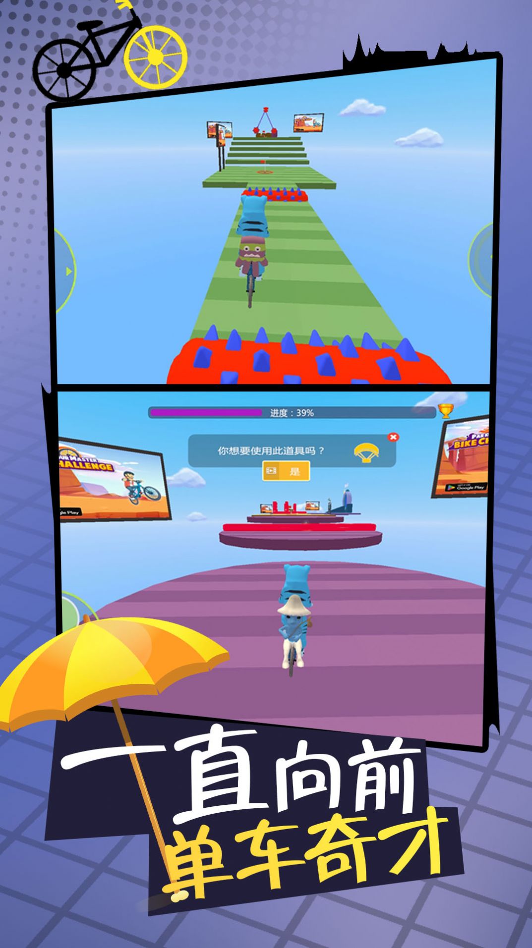 在比赛中要使用道具进行加速,避开障碍物和坑洞,保持自行车的平衡状态;