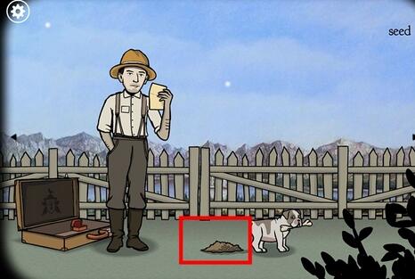 然后来到场景左边,点击绅士,得到提示,把药剂喂给狗。药剂滴入狗盆,点击狗喝下,安全。