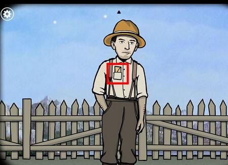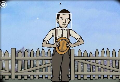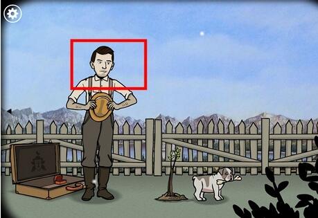 点击绅士,脸部跳出白色方框,点击绅士脸部,第一关结束。