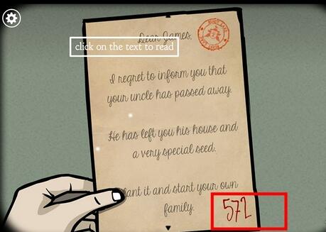 然后我们发现绅士的胸前口袋有一黄色异物,点击绅士,点击口袋里的纸,打开纸张发现下端有数字572,判断此为行李箱的密码。