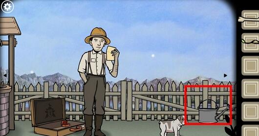 进入关卡,初略观察四周,场景中有水井一口,小狗一只,洒水壶一个,行李箱一枚。依照人类的好奇心我们首先点击行李箱,发现行李箱有三位密码锁。