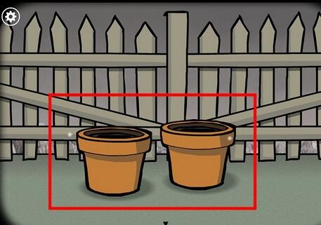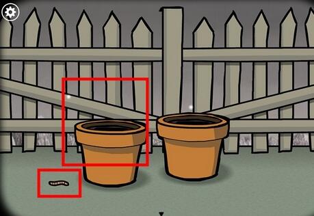 点击栅栏旁的花盆,发现虫子,点击左侧花盆,获得蓝色宝石。