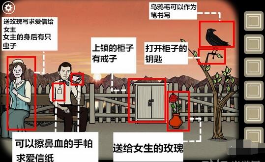 关卡道具:玫瑰花,乌鸦羽毛,毛毛虫,钥匙,信纸,手帕
