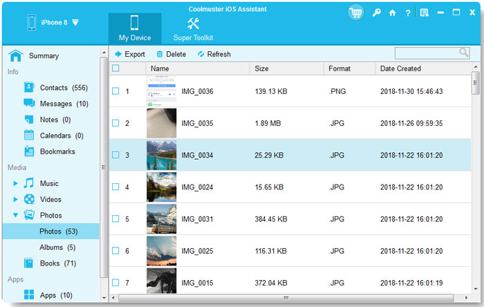 Coolmuster iOS Assistant是款iOS管理软件;将该软件安装成功之后,通过USB数据线连接需要进行使用的设备,只要连接成功,就能自动的完成设备上面所有数据的读取,并且选择需要导出或者备份的数据,就能进行导出备份的操作;而且也支持将电脑上的数据导入到ISO设备里面,对备份还原的功能支持,让你对ISO设备数据的控制更加完善,感兴趣的朋友不要错过!