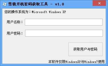 雪镜开机密码获取工具是一款可以获取windows xp及windows7系统的开机密码以及用户名的工具,很多朋友有时候设置多个账户,时间久了忘