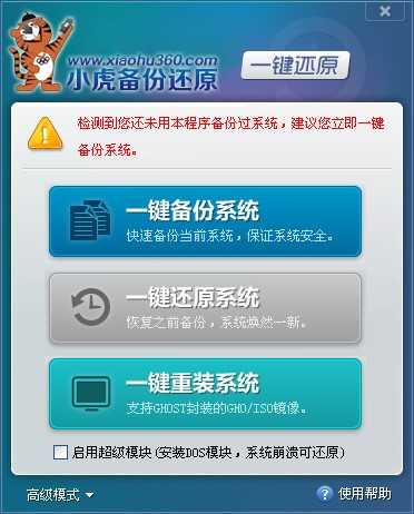 小虎一键备份还原 XHGhost V5.等级:2013-07-197.06 MB简体中文下载推荐理由:小虎一键备份还原是一款用于系统备份还原的工具,它把您的系统备份成 Ghost 文件,隐藏在电脑磁盘中,